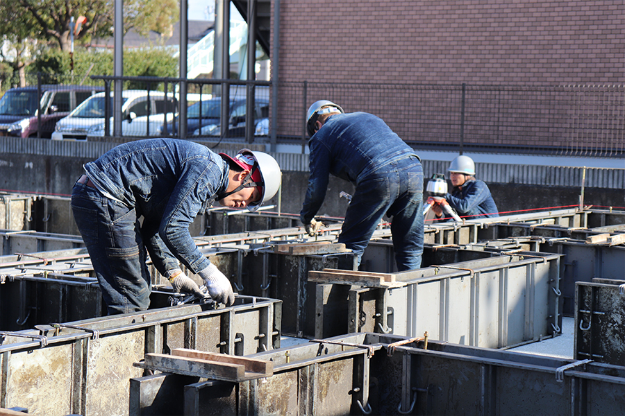 型枠工事は基礎に土台が乗る部分を形成していく重要な工事